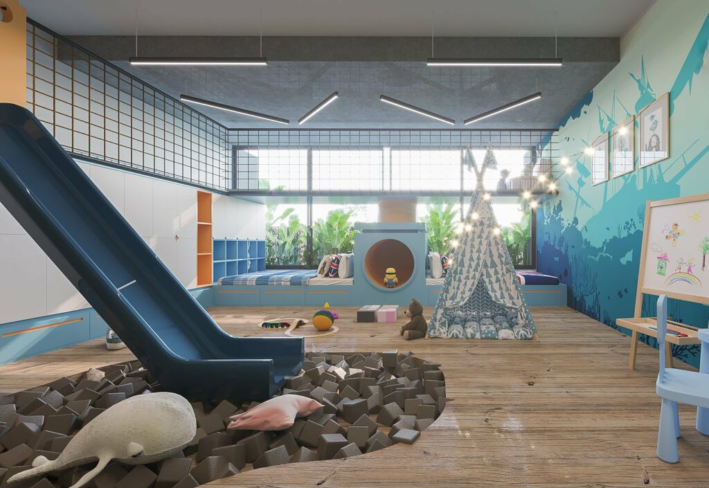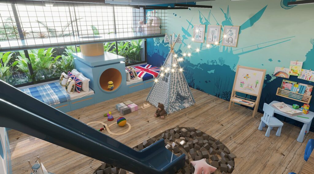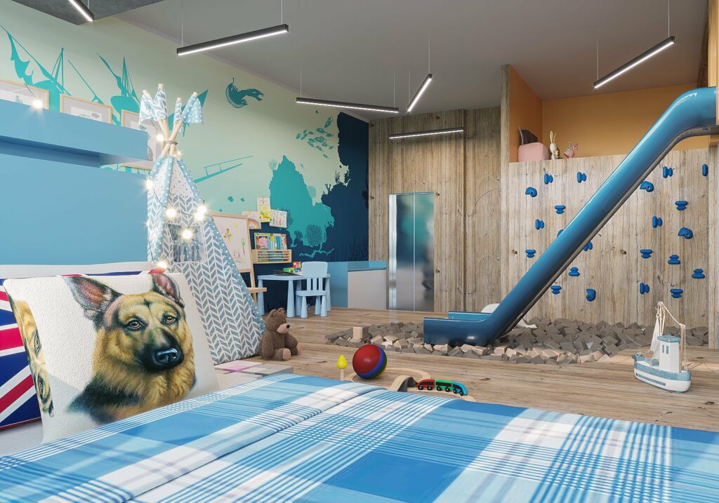Phòng ngủ kết hợp với cầu trượt tạo không gian vui chơi cho bé