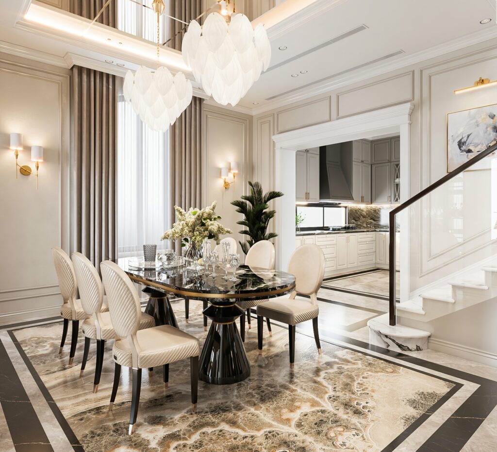 Phòng ăn được bày trí vô cùng sang trọng