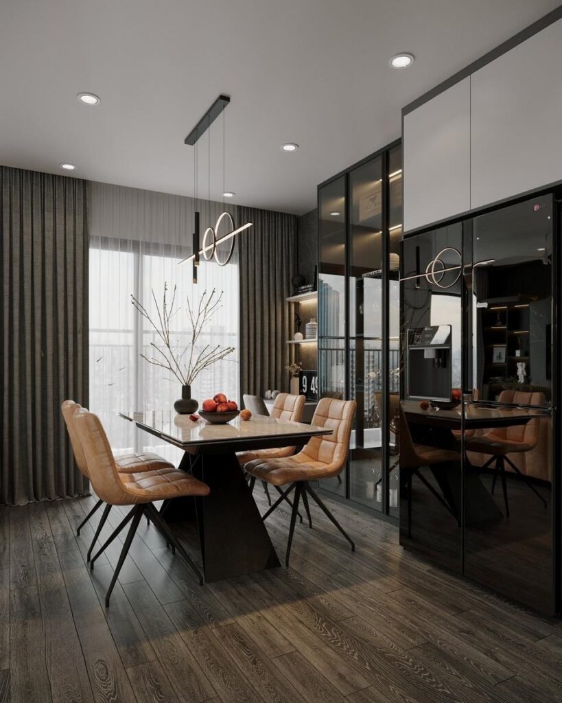 Tông màu đen là biểu tượng của sự bí ẩn, sang trọng và phong cách. Các phòng trong căn hộ được thiết kế với tông màu đen tạo nên sự huyền bí và cái nhìn đẳng cấp.