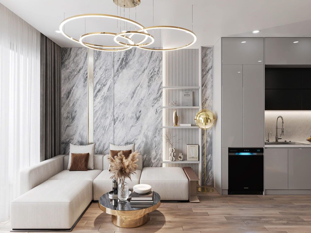 - Màu sắc: Chọn gam màu trung tính như trắng, xám, be để tạo cảm giác rộng rãi, dễ dàng kết hợp với các màu sắc nổi bật từ nội thất.
